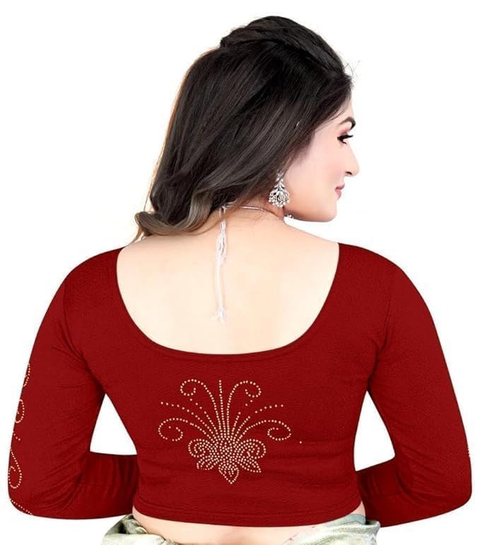 Full Diamond Stylish Readymade Stitched Stretchable Blouses, Readymade Cotton Lycra Round Neck Full Sleeve Blouse for Women